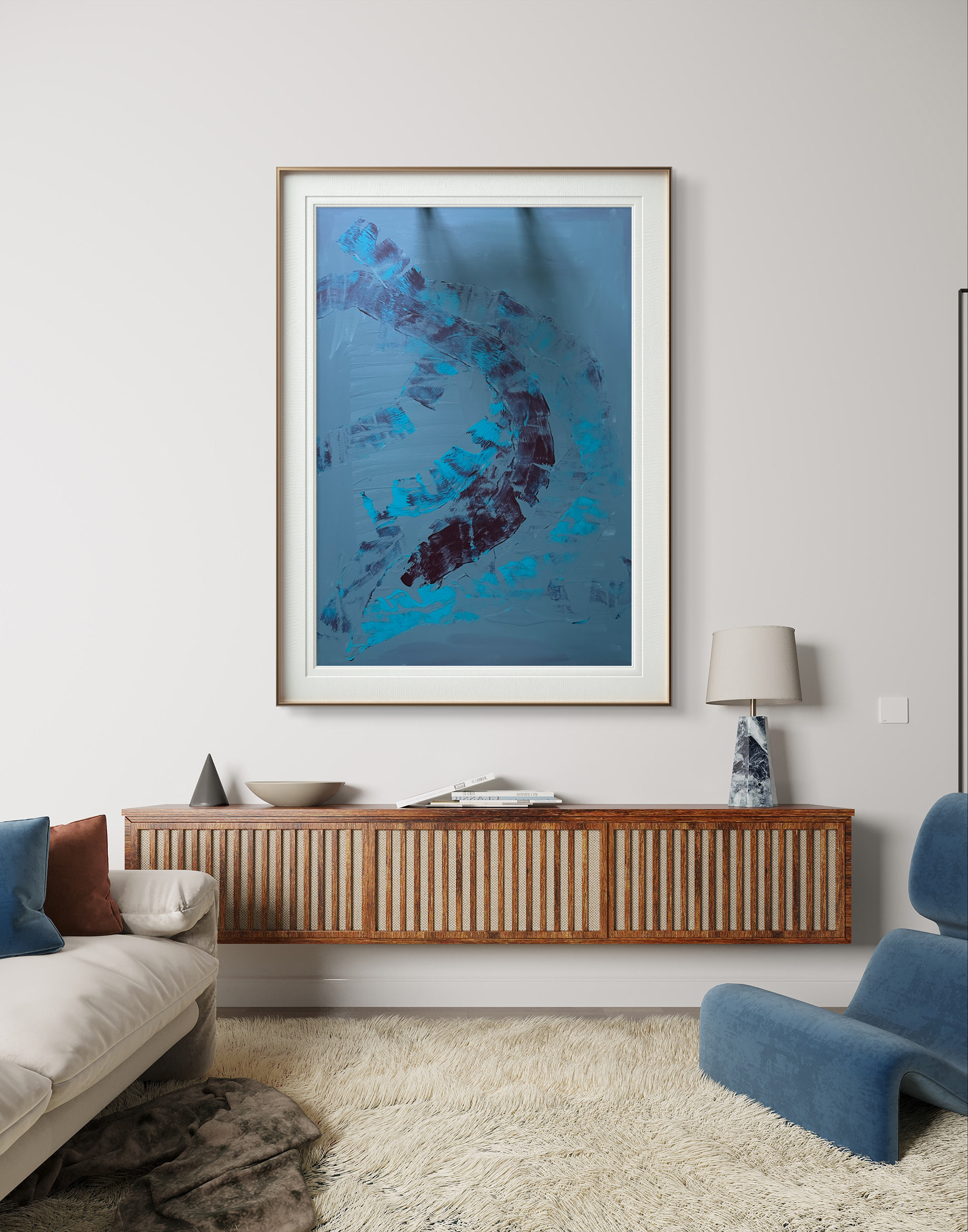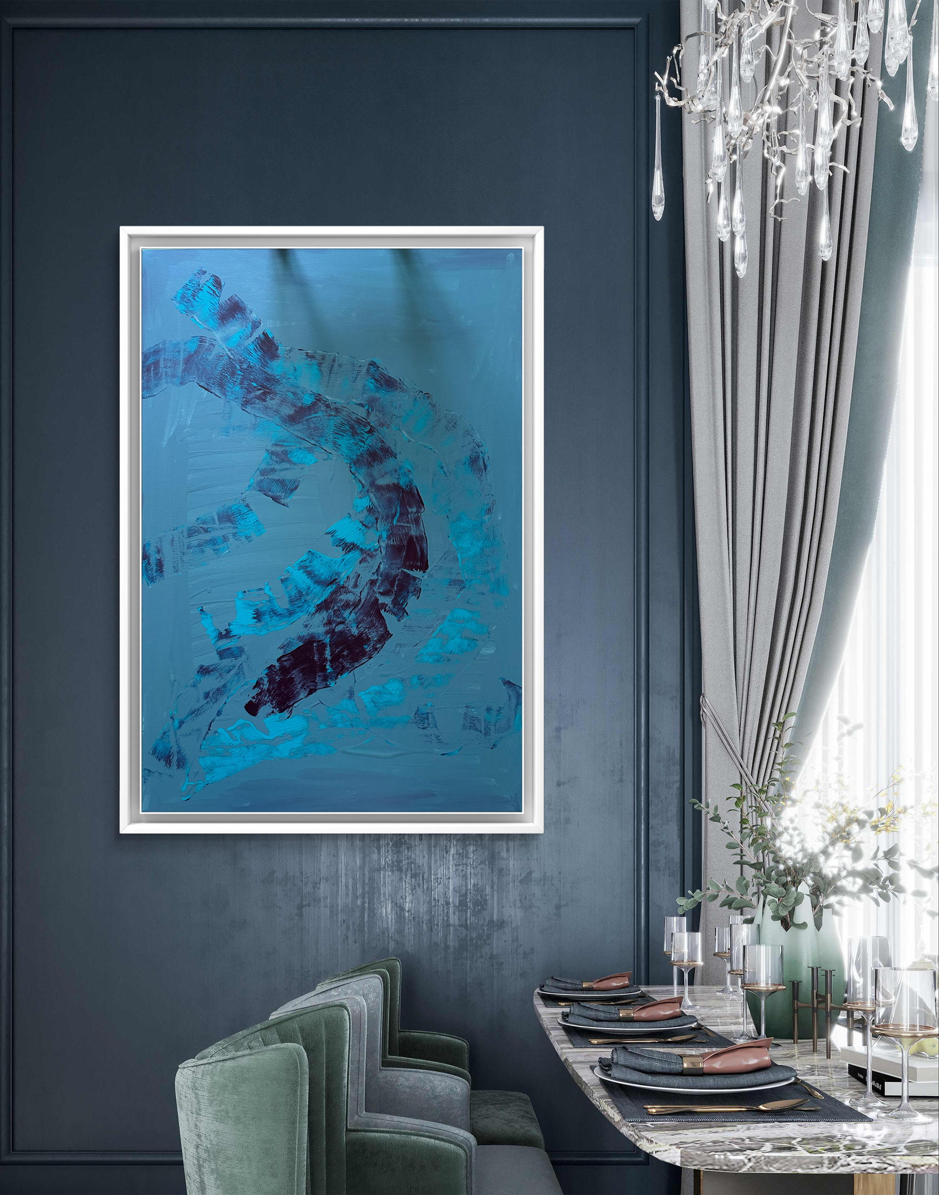 The painting reflects the energy of the ocean – currents that are playful like a dolphin and mysterious like a jellyfish.